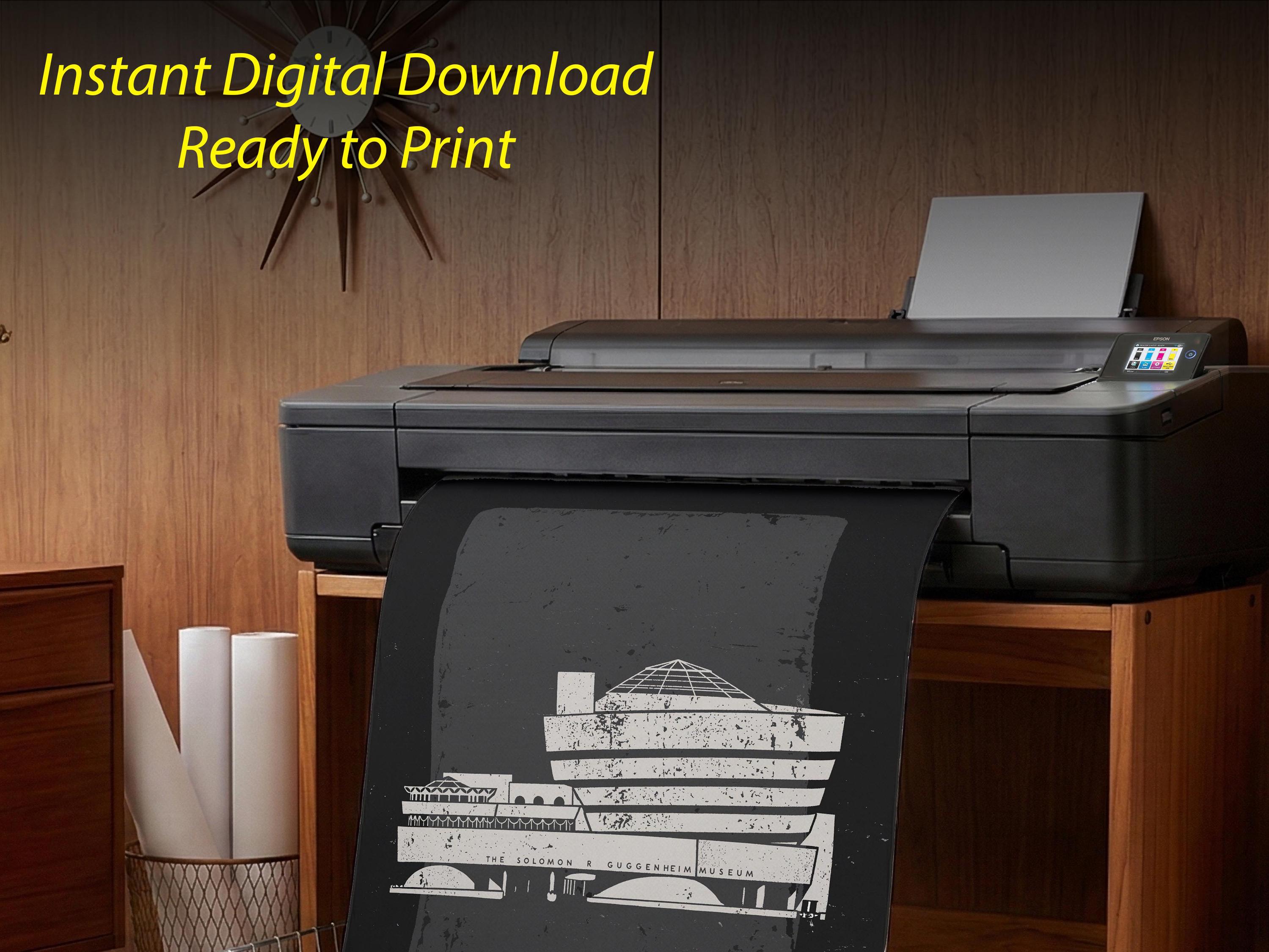 Bring a piece of architectural history into your home with this striking digital tribute to the Solomon R. Guggenheim Museum. This high-contrast, textured illustration captures the iconic curves of Frank Lloyd Wright’s New York City masterpiece. Perfect for an office, gallery wall, or a minimalist living room, this digital download offers a sophisticated "vintage blueprint" aesthetic with a modern, gritty twist.